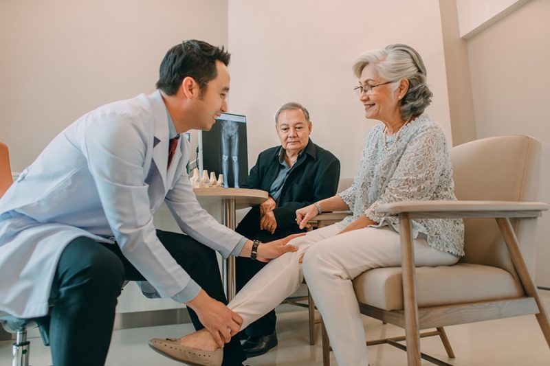 นพ. สมบัติ โรจน์วิโรจน์ ศัลยแพทย์กระดูกและข้อ เฉพาะทางด้านข้อสะโพกและข้อเข่า ศูนย์ข้อสะโพกและข้อเข่า รพ.กรุงเทพอินเตอร์เนชั่นแนล อธิบายว่า โรคข้อเข่าเสื่อม (Knee Arthritis) จะมีอาการปวดเข่า เข่าบวม เข่าอักเสบ เดินแล้วมีเสียงก๊อบแก๊บในข้อเข่า ไม่สามารถยืดหรือเหยียดขาได้สุด รวมทั้งการเดินขึ้นลงบันไดที่ลำบาก เกิดปัจจัยเสี่ยง ได้แก่ อายุที่เพิ่มมากขึ้น เพศหญิง การที่มีน้ำหนักตัวเกิน ซึ่งในเพศหญิงมีความเสี่ยงมากกว่าผู้ชาย การได้รับแรงกระแทกซ้ำ ๆ ที่ข้อเข่า การเกิดอุบัติเหตุที่บริเวณข้อเข่าและพันธุกรรม ถ้าผิวของข้อเข่าได้รับความเสียหายอย่างรุนแรงจากการอักเสบของข้อเข่าหรืออุบัติเหตุ จะรู้สึกปวดแม้ขณะนั่งหรือนอน แพทย์จะการตรวจวินิจฉัยข้อเข่าเสื่อม ทำได้โดย การซักประวัติสุขภาพ รวมทั้ง การตรวจร่างกาย ตรวจการทำงานของเข่า เช่น X-ray เพื่อดูพยาธิสภาพ ความเสียหายของเข่าที่เสื่อม การตรวจคลื่นแม่เหล็กไฟฟ้า (MRI) เพื่อดูสภาพของกล้ามเนื้อ และเนื้อเยื่อต่างๆ รอบกระดูก