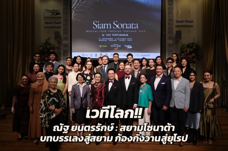 กรุงเทพฯ, ศาลาสุทธสิริโสภา – การท่องเที่ยวแห่งประเทศไทย, สำนักงานศิลปวัฒนธรรมร่วมสมัย, บริษัท ไทยเบเวอเรจ จำกัด (มหาชน), บริษัท การบินไทย จำกัด (มหาชน) และ ณัฐ ยนตรรักษ์ ภูมิใจเสนอ “ภารกิจดนตรีครั้งประวัติศาสตร์ สู่เวทีโลกกับทัวร์คอนเสิร์ต Siam Sonata: Musical Tour Through Thailand 2025 by Nat Yontararak” ที่จะยกระดับซอฟต์พาวเวอร์ไทยสู่ผู้ชมระดับเวิลด์คลาสกับการแสดงคอนเสิร์ตของ “ณัฐ ยนตรรักษ์” ศิลปินไทยผู้สร้างปรากฏการณ์บนเวทีสากลด้วยผลงานการแสดงเปียโนคอนเสิร์ตที่ประสบความสำเร็จมาแล้วทั่วโลก โดยการแสดงครั้งนี้จะจัดขึ้น ณ 4 เมืองสำคัญด้านศิลปะวัฒนธรรมระดับโลก เริ่มจาก กรุงเทพ (ศาลาสุทธสิริโสภา), บูดาเปสต์ (Franz Liszt Academy of Music), เวียนนา (Ehrbar Saal) และปิดท้ายที่ ปารีส (พิพิธภัณฑ์กีเมต์) ระหว่างวันที่ 21 กันยายน 2568 ถึง 3 ตุลาคม 2568