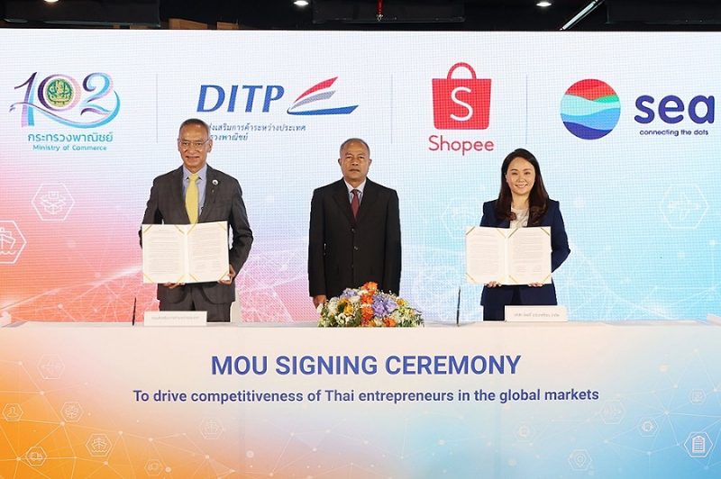 นายสินิตย์ เลิศไกร รัฐมนตรีช่วยว่าการกระทรวงพาณิชย์ เป็นประธานลงนาม MOU ระหว่าง กรมส่งเสริมการค้าระหว่างประเทศ (DITP) และ บริษัท ช้อปปี้ (ประเทศไทย) จํากัด ภายใต้เครือ Sea (ประเทศไทย) ในการร่วมมือ ด้านการส่งเสริมการค้าออนไลน์ข้ามพรมแดน หวังดันผู้ประกอบการรายย่อยของไทยกว่า 50,000 ราย ขายออนไลน์ไปต่างประเทศและสร้างมูลค่ากว่า 300 ล้านบาทใน 3 ปี