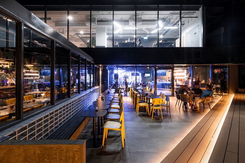 หรือหากอยากนั่งข้างใน ห้องแอร์ ฟังดนตรีสดชัดๆก็สามารถนั่งข้างในได้เช่นกัน รองรับคนได้กว่า 200 คน พร้อมที่จอดรถ 4 ชั้น